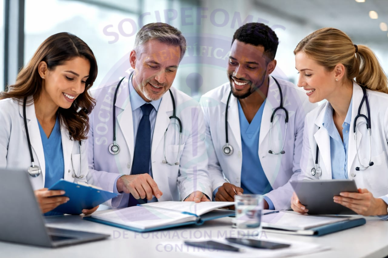 Somos una sociedad sin fines de lucro dedicada al ámbito científico y a la formación médica continua, la idea de formar una Sociedad Científica de Formación Médica Continua nace a partir de la imperiosa necesidad de generar e impartir los conocimientos necesarios, fomentando la actualización y retroalimentación de los mismos en los profesionales de medicina humana con la finalidad de lograr una adecuada atención médica de calidad y con calidez humana hacia nuestros pacientes, minimizando de forma clara y contundente los errores médicos en beneficio de la sociedad humana que necesita ser atendida para sanar sus dolencias y enfermedades, fomentando la prevención y promoción de la salud, es importante también mencionar lo fundamental de un diagnóstico certero, utilizando la evidencia científica, los conocimientos adquiridos en nuestra periodo de formación académica / universitaria, y que seguimos recibiendo en nuestra etapa como médicos colegiados, con el afán de seguir actualizándonos en base a las guías y trabajos de investigación científica. En esa mismo tenor indicar un tratamiento efectivo, aplicando protocolos terapéuticos que maximicen la recuperación y minimicen los efectos adversos, aplicando la ética y deontología.